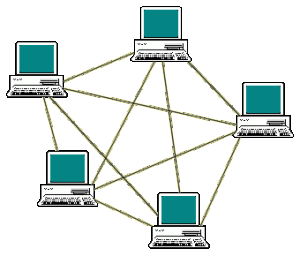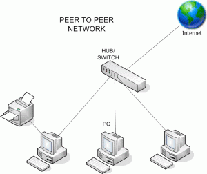 Pada jaringan ini tidak ada komputer client maupun komputer server karena semua komputer dapat melakukan pengiriman maupun penerimaan informasi sehingga semua komputer berfungsi sebagai client sekaligus server.
